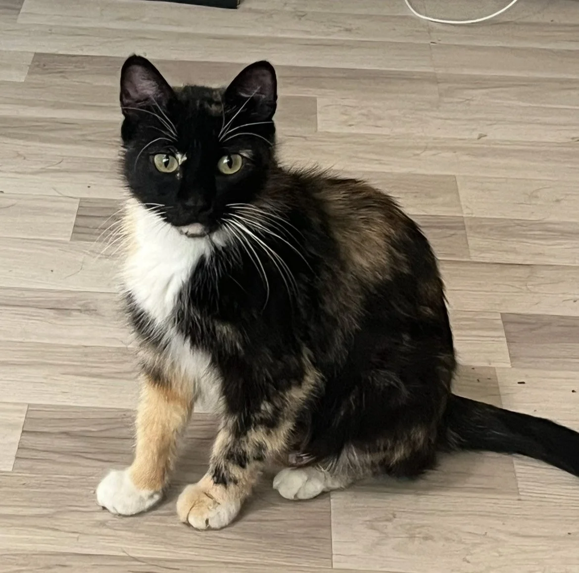 Alice has been living on the streets for the last couple of years. She is a very gentle and curious girl who has unfortunately had way too many babies for her young age. She has started to come around to being able to sit near her foster humans and even jump on our laps but only if we have food she would like a taste of. While she may never be a cuddler, she is a very sweet girl who deserves a quiet home where she can learn to trust and play.