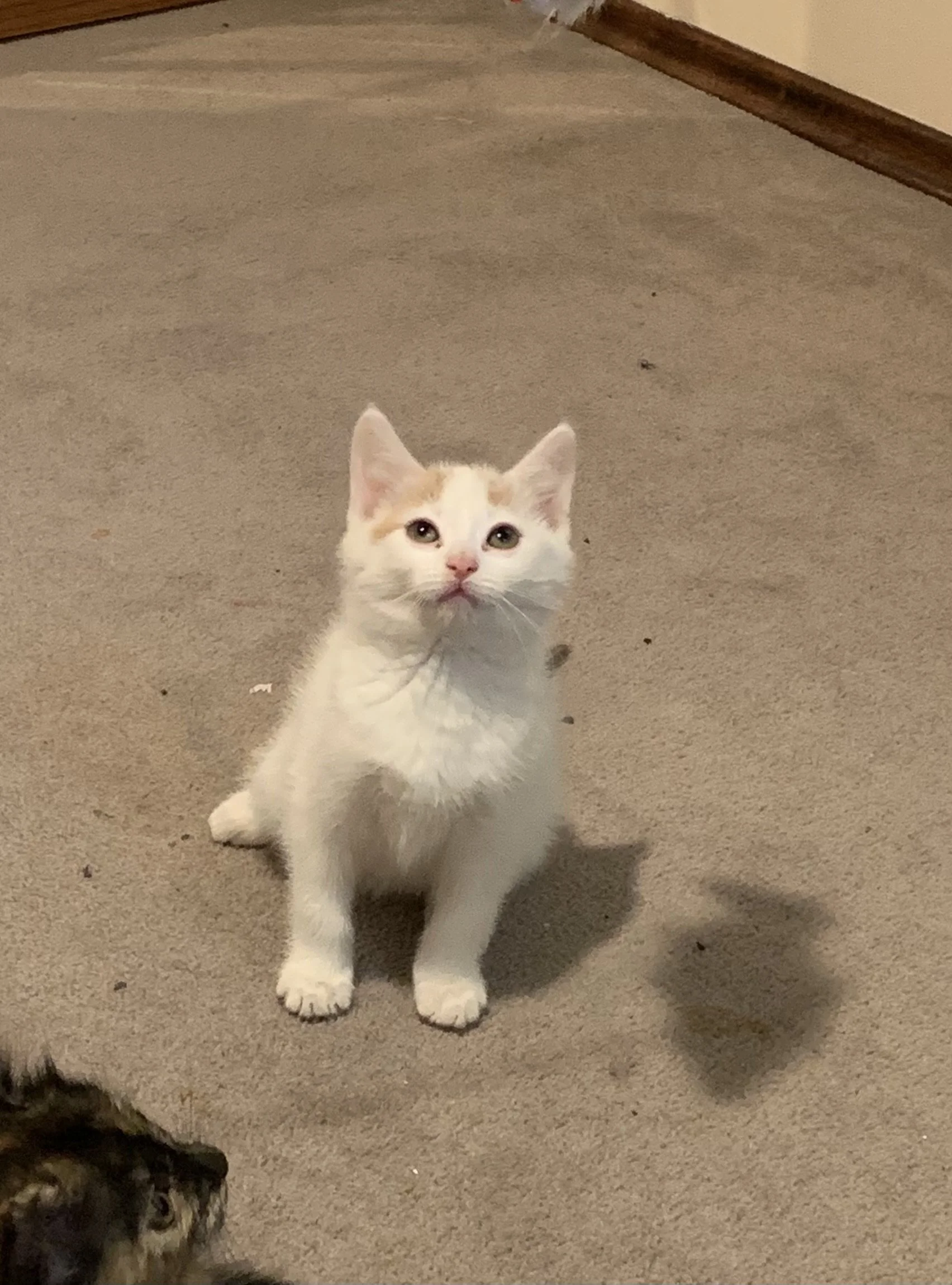 This playful little goofball would love to have another kitty (or possibly a dog) to explore and play with!