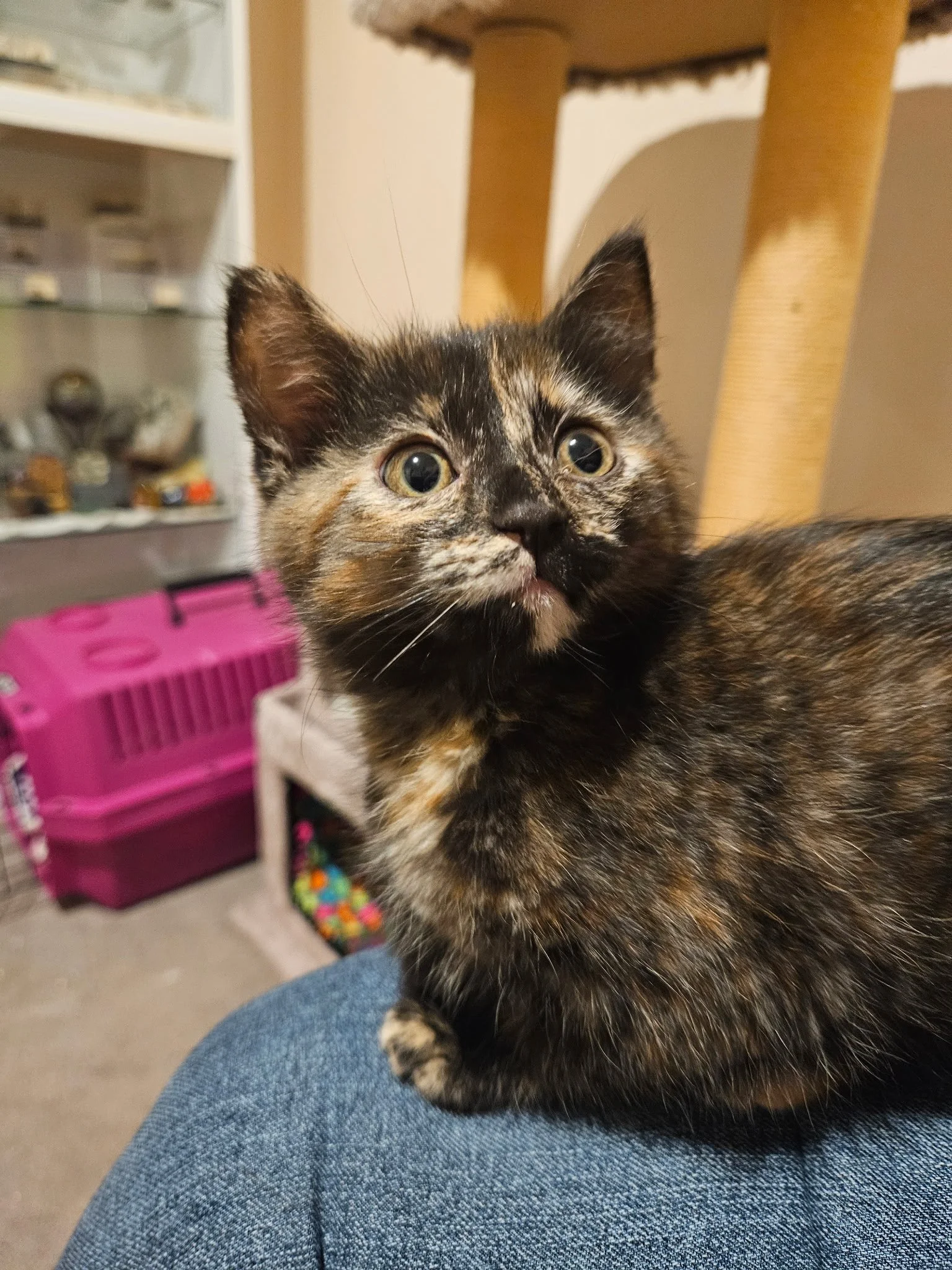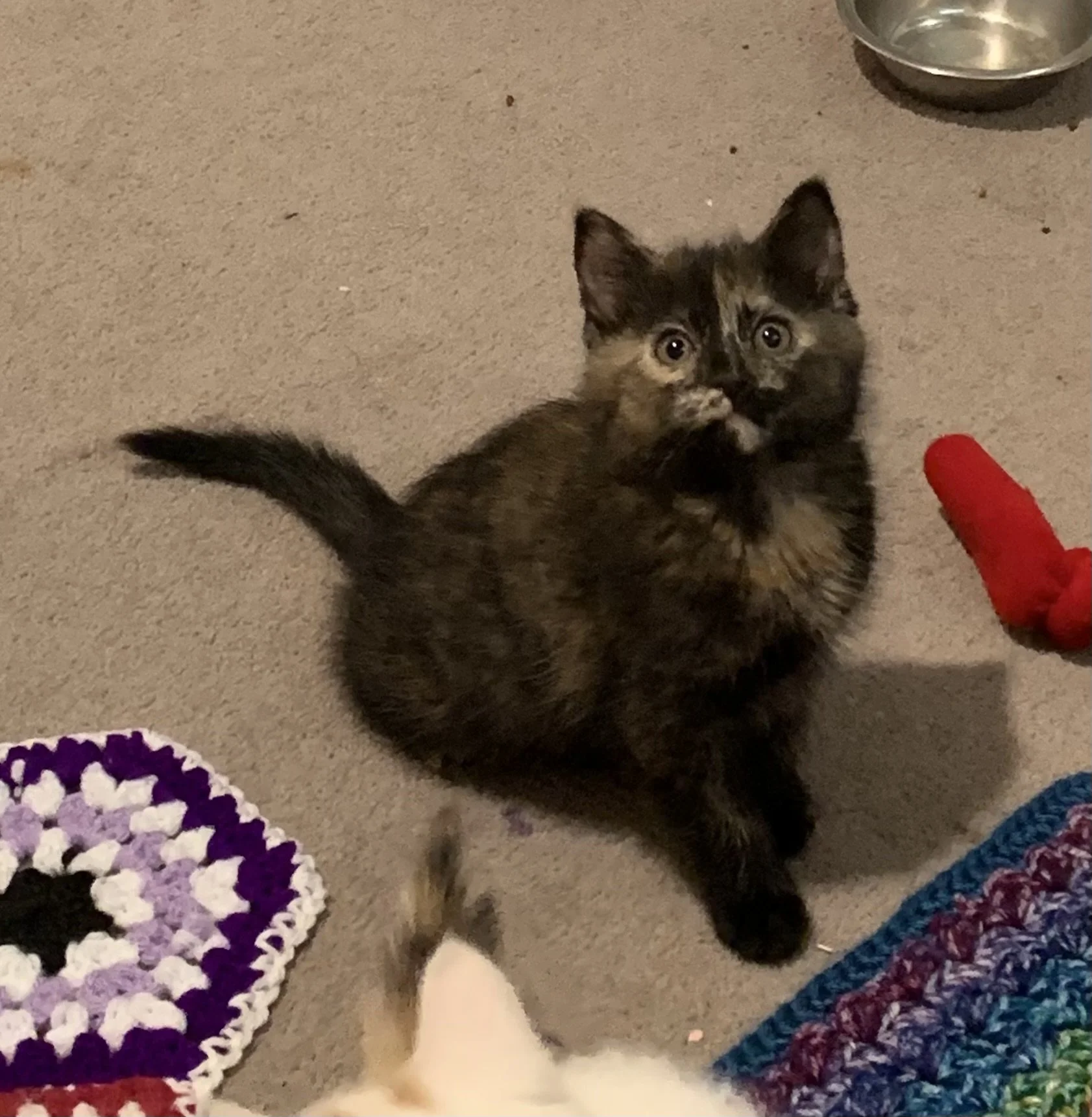 Crow is a curious little kitten that loves to play with her toys and wrestle with her foster siblings! Once she settles in, Crow loves her cuddles. She rarely stops purring when people are around!!