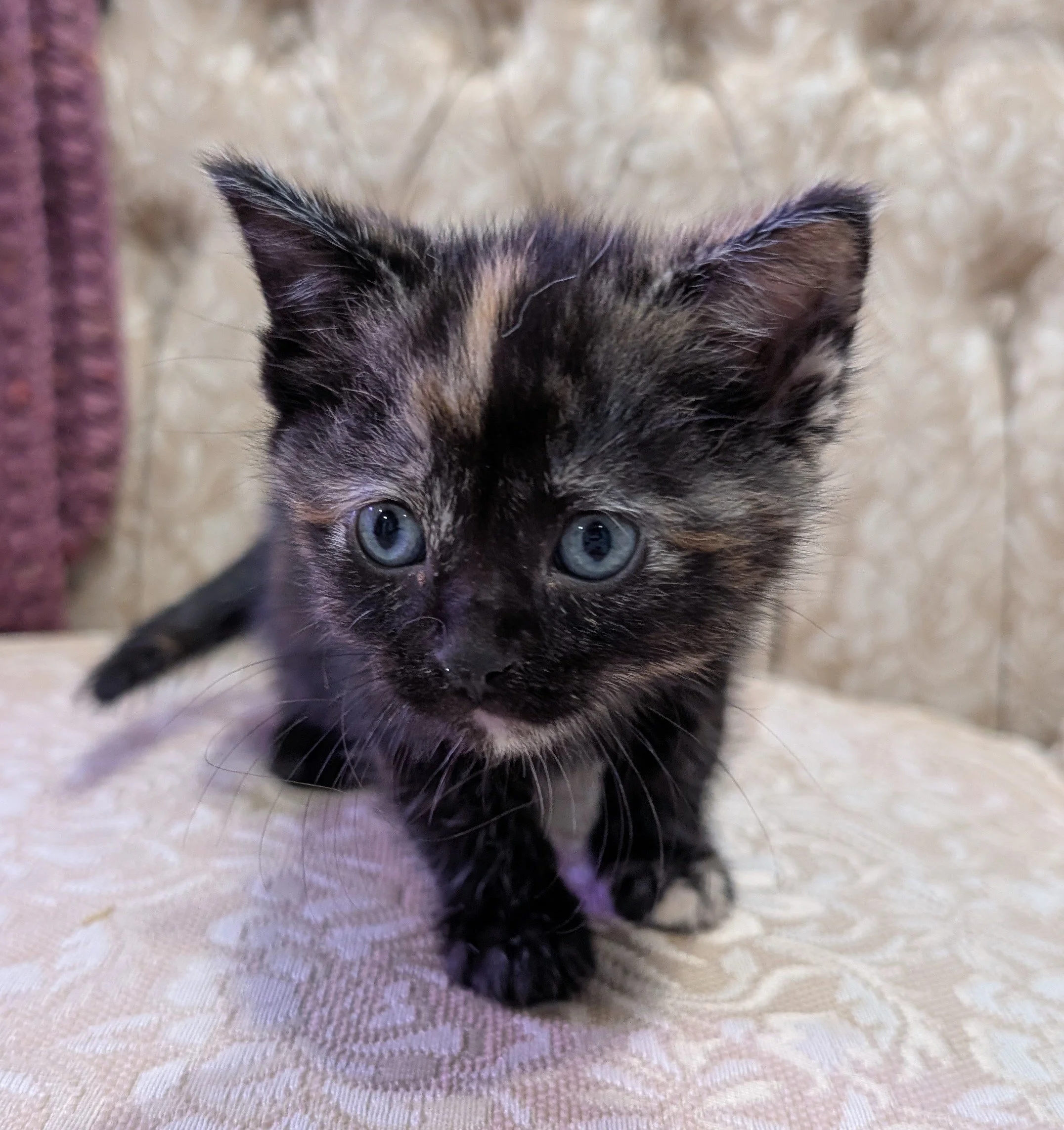 Haskap would like to go on record that despite a passing resemblance, she is not a Mogwai and that you can absolutely feed her after midnight without her turning into a Gremlin. She has no comment on whether or not that is exactly what a Mogwai would say. However, she would like you pet her and she would be happy to cuddle in your lap. At least until play time when she transforms into a speedy, little sprinter, chasing toys and exploring any space she can fit into.