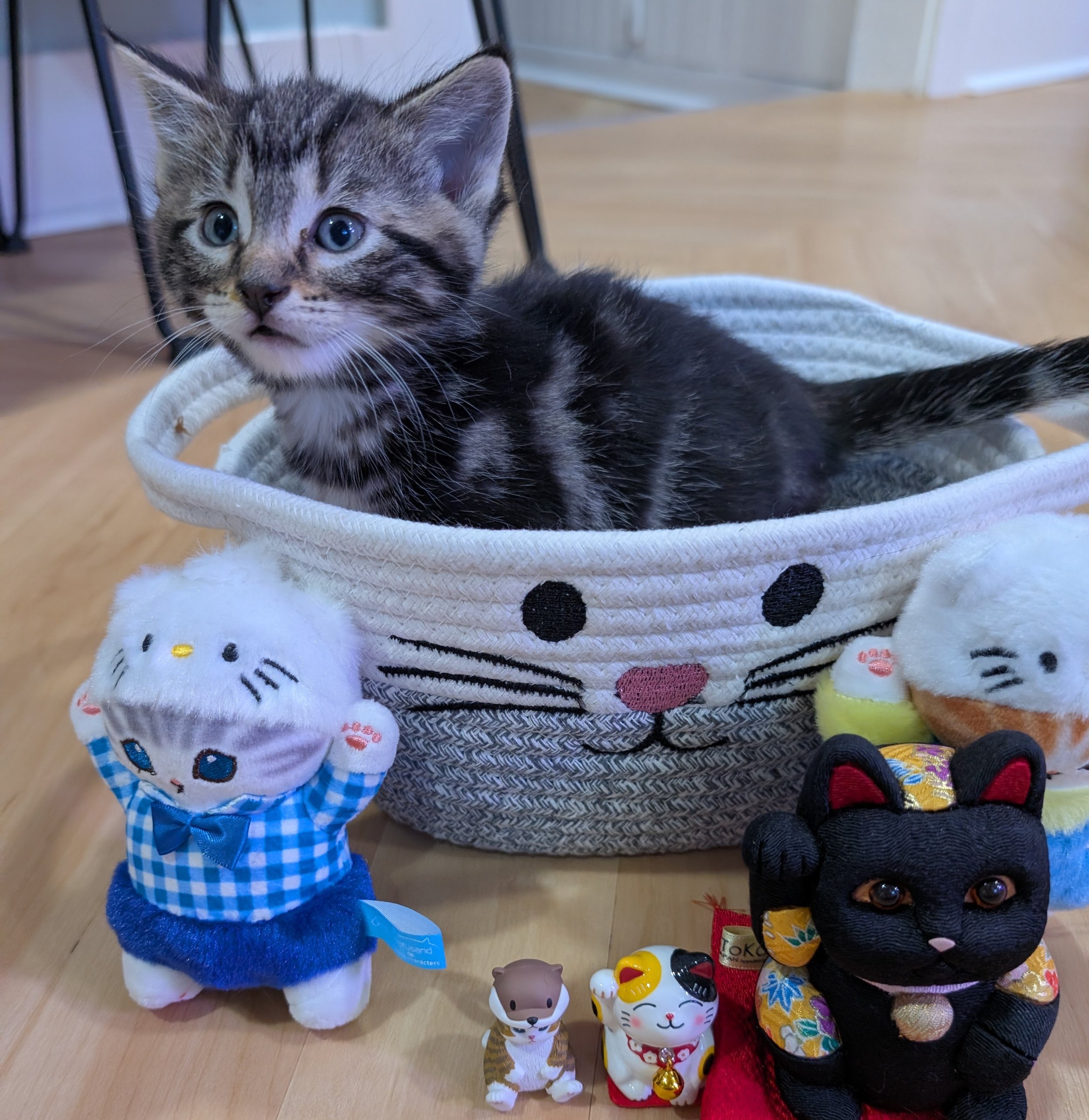 Like her floral namesake, Hollyhock is attention-grabbing, pretty, and full of life. She is a spunky kitten, who won't be pushed around by her larger siblings, and who loves to roughhouse and play with toys. However, once her tummy is full, she is happy to snuggle up for a well-deserved nap. She is excited to find her forever home and can't wait to meet you.