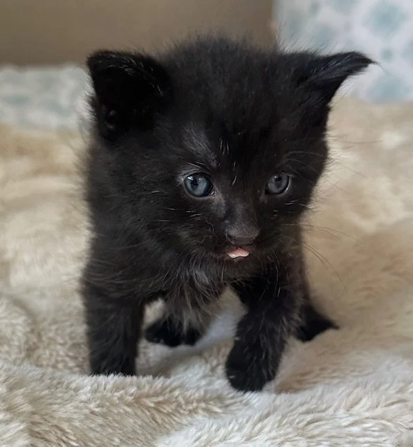 Iggy is a quiet little boy. He loves to play and wrestle with his siblings. He has mostly black fur with tufts of white. He is a little sweetheart who is hoping to find his forever home.