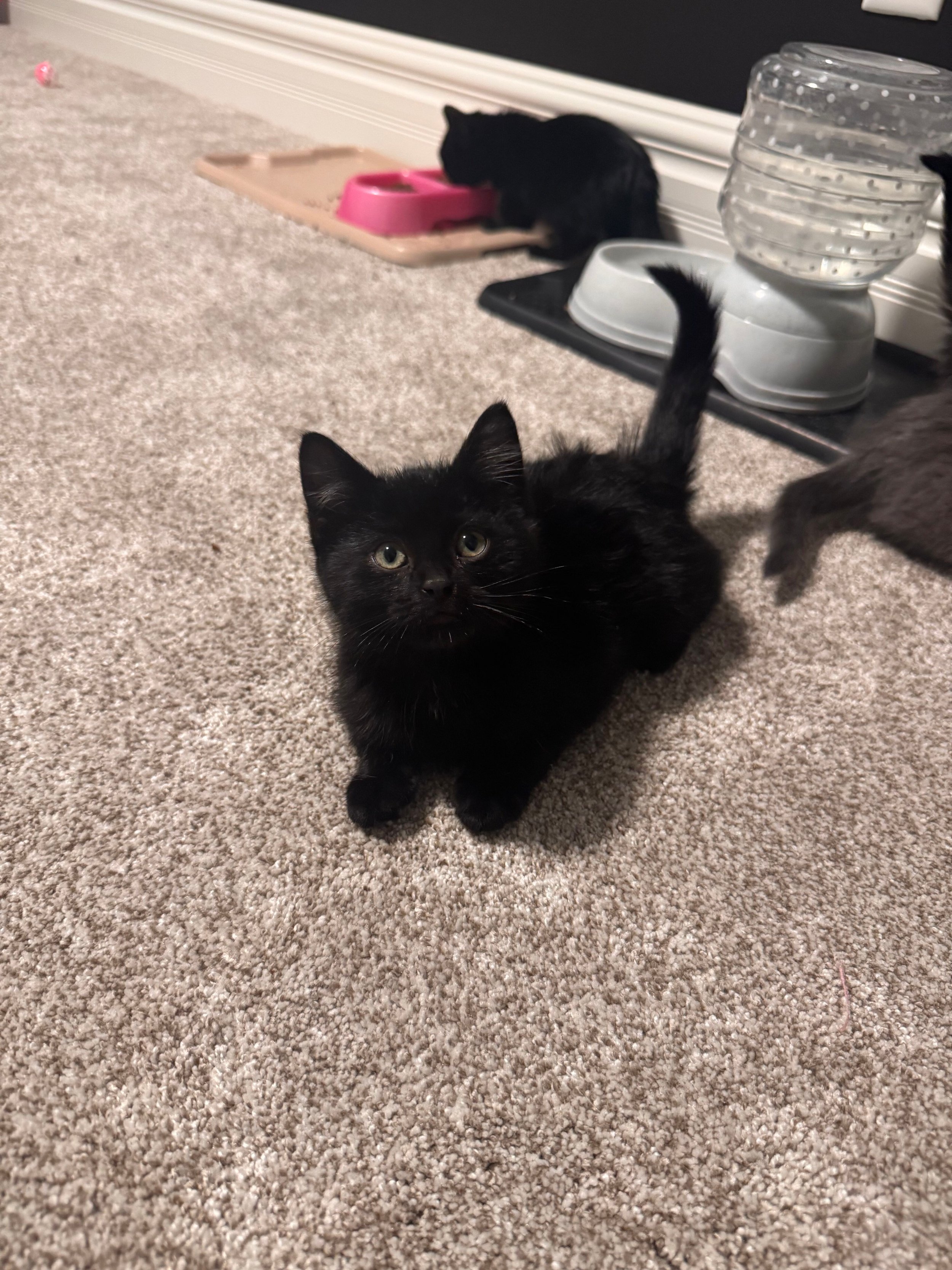 Hi, my name is Leon, and I am a very sweet and cuddly boy! I just love snuggling, as well as competing for my foster mom's love when my foster siblings are trying to snuggle with her. If I'm not cuddling on your chest, I must be cuddling on your lap. When I'm ready for a break from snuggling, I love chasing the laser pointer around - I feel like I am SO close to catching that darn thing. I love cuddling with my brothers and sister and love being around them or humans all the time. My foster parents are confident I will fit into any sort of home because I'm such an easy going, loving boy. OH - and you will LOVE how soft my pretty black coat is!