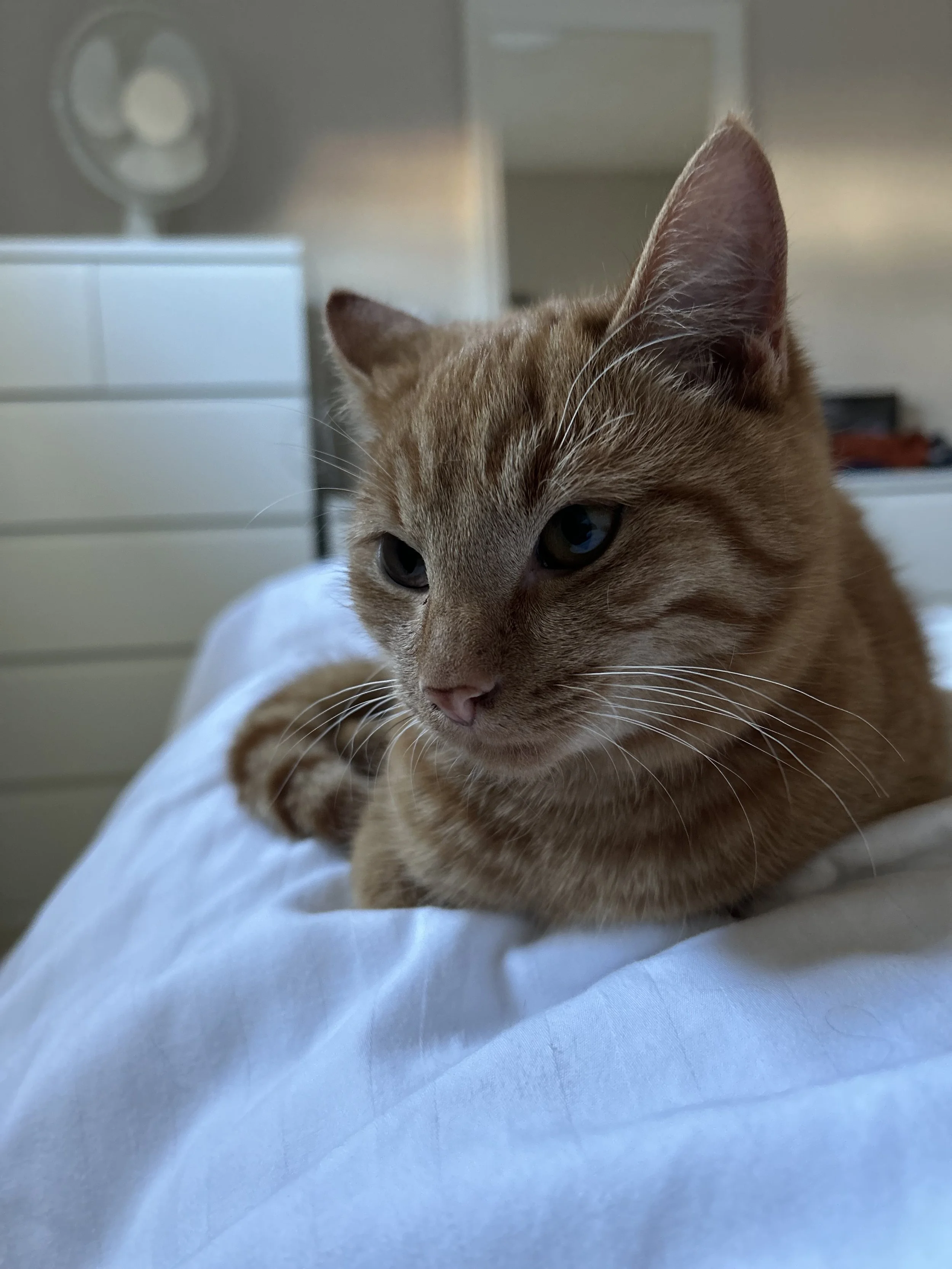 Likes: Cuddling, attention, head and chin scratches, meal time