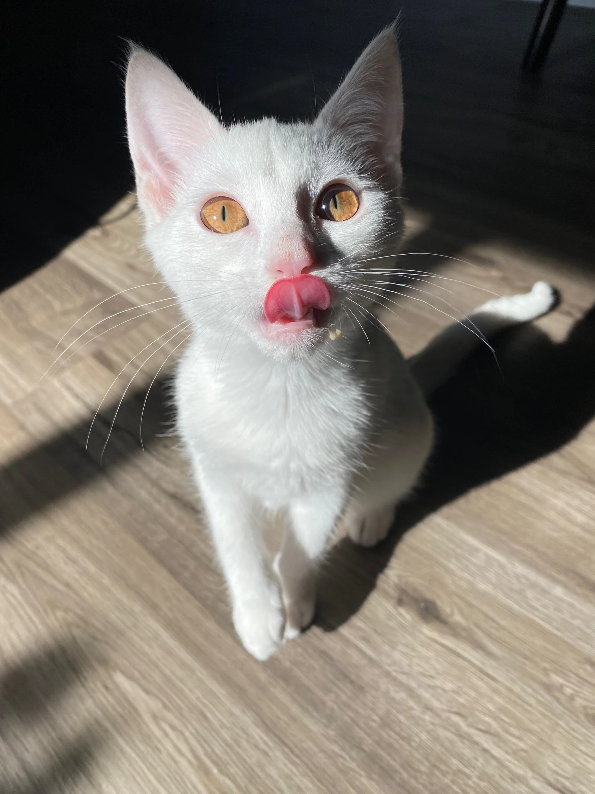 She gets along well with other cats and would probably do fine with respectful kids or dogs too - as long as they give her a chance to settle in at her own pace. If you’re looking for a sweetheart who will reward your patience with endless love (and maybe steal your snacks), Oleander might be your girl.
