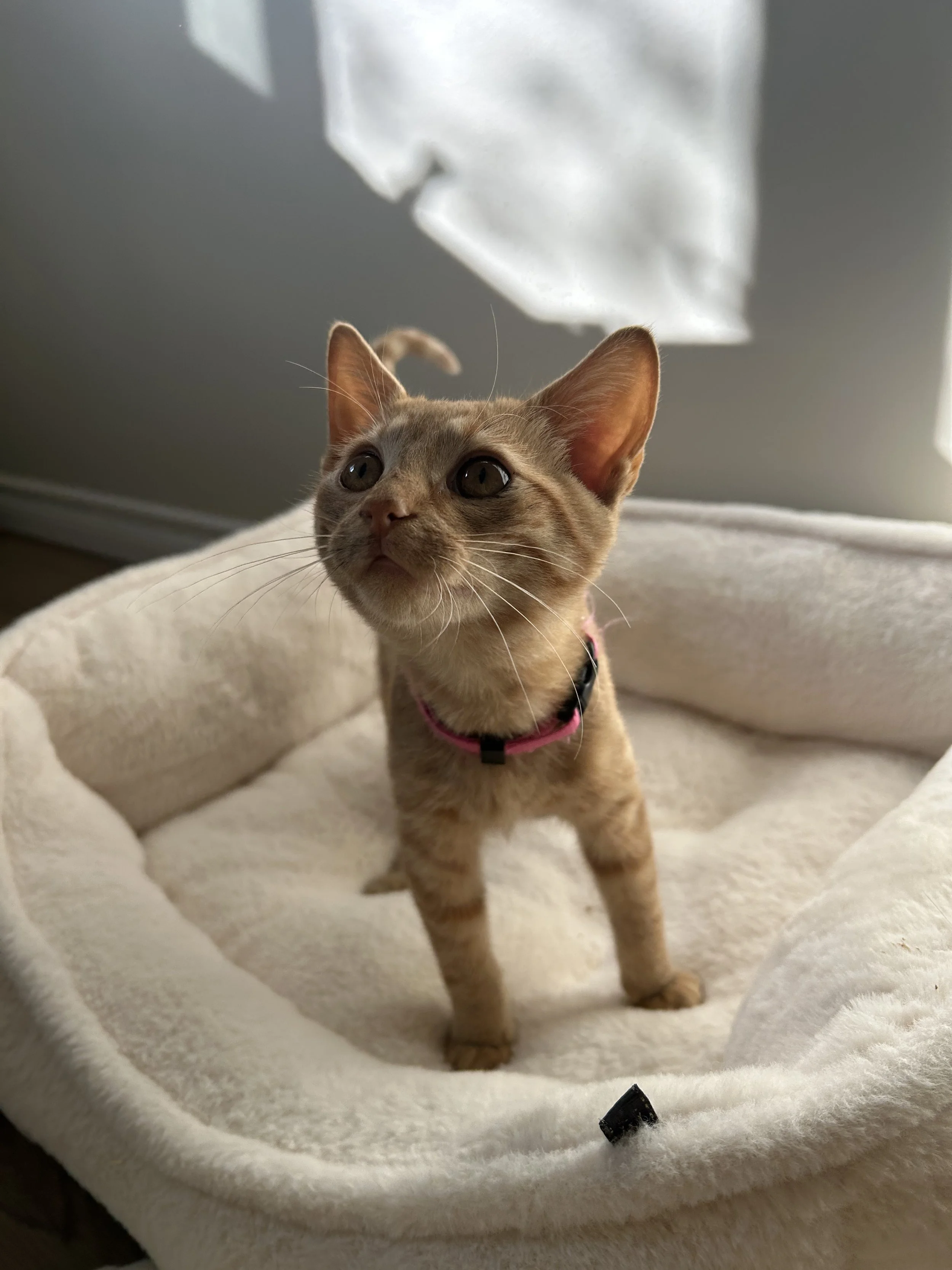 Opie is the sweetest and most affectionate girl who will gladly snuggle up to you for hours. She's quieter than her siblings, but is not shy, and absolutely loves human attention. She is playful, goofy, trusting, and the biggest sweetheart.