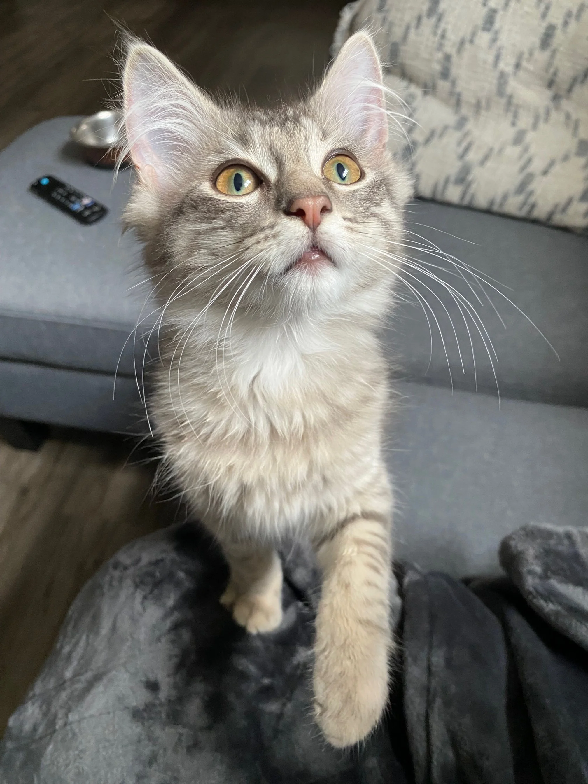 Oregano loves wrestling with her sibling and would likely thrive with another playful cat sibling. She likely would do well with gentle kids or dogs too. Her personality shines the most in a quieter environment, but with time and patience she could also acclimate to a busier lifestyle.
