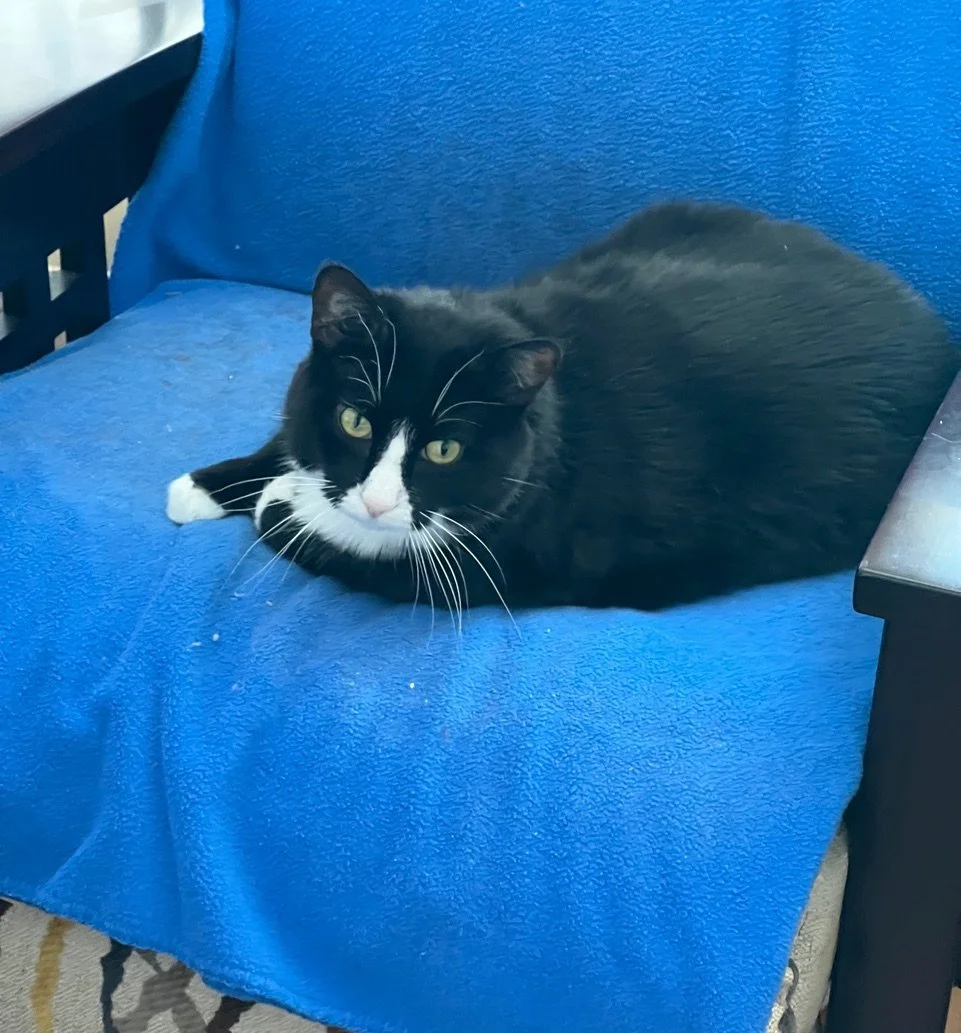 Panda is a handsome 6-year-old boy with a beautiful black coat. He is undemanding with a squeaky meow and a tail that wags like a dog when excited. He loves to tell you about his night first thing in the morning, before breakfast. He came from a home with two female cats so probably would fit in with other cats. Panda is a lovely cat and would make a great companion. He will be timid at first, but slowly becomes more outgoing as he gets to know you.