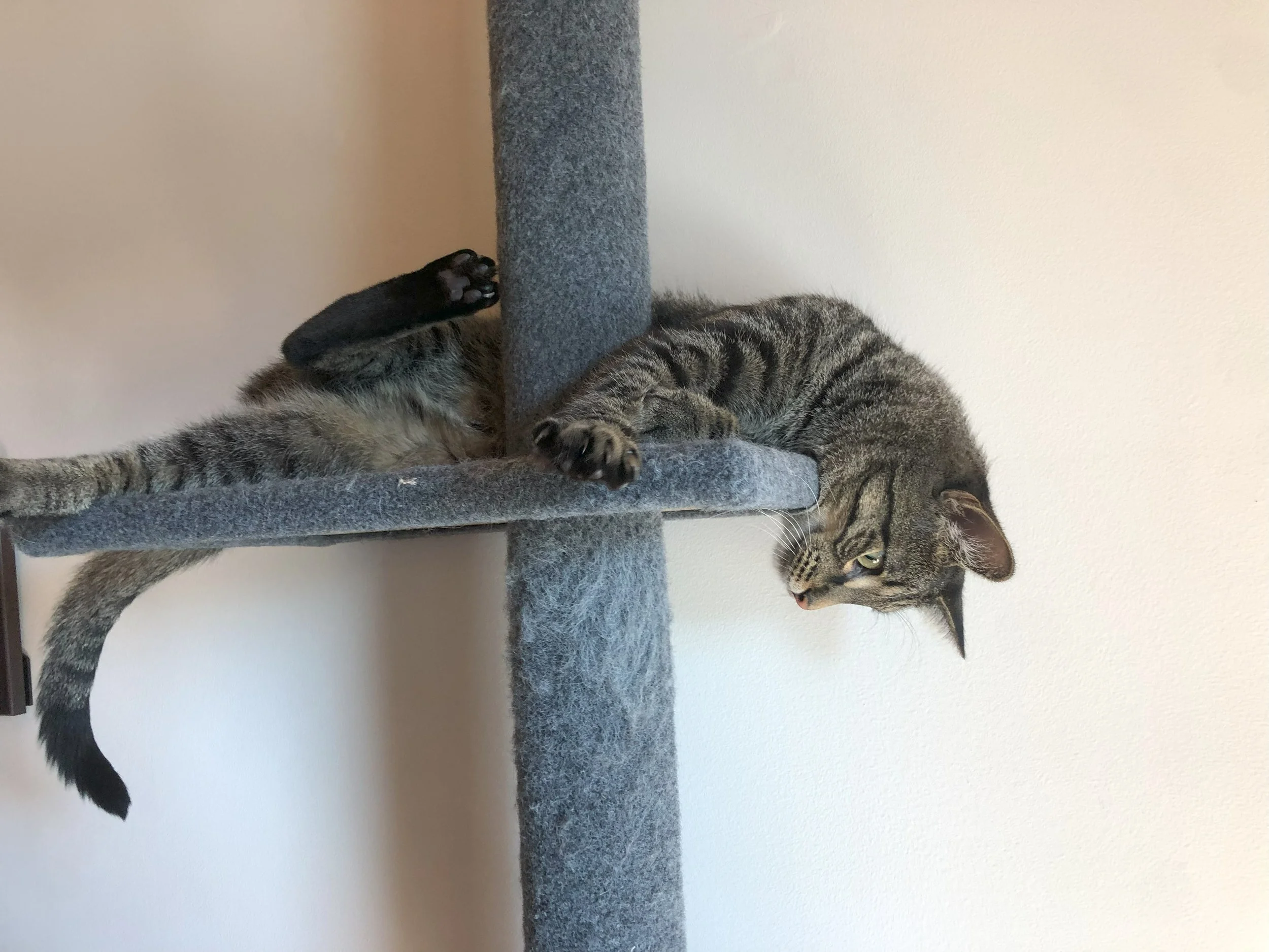 An ideal home would have: vertical climbint spaces, a feline friend, lots of snuggle spots