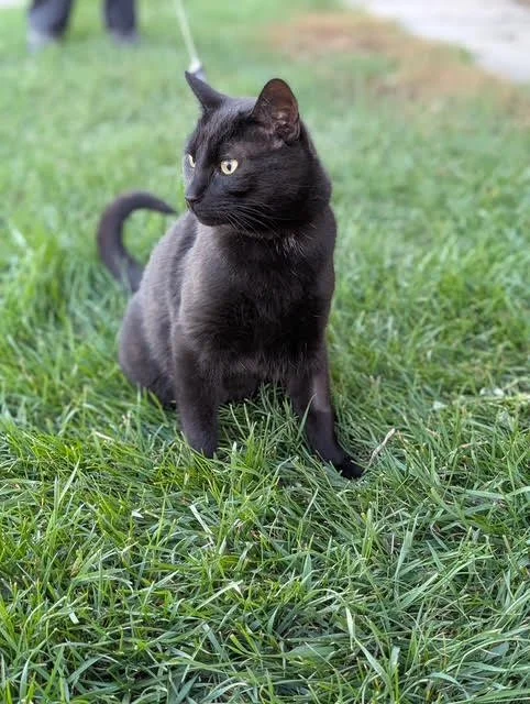 Meet Upsilon (who goes by Freddie)! He is 3 years old, and is a sweet, affectionate, and enthusiastic boy. He likes to start his day off with breakfast (and will let you know if you’re late), and spend the rest of his day alternating between sleeping in the sun and playing with as many toys as possible. He is an especially big fan of laser pointers, feather wands, and balls. During the evenings, he enjoys curling up and purring on your chest while you’re watching television or reading. He's happy to sleep alone, but he will snuggle up with you on your bed overnight as well. When he’s thoroughly happy, he just can’t help himself and will often give you head butts, a few licks and ask for pets - he loves a good head massage. However, Freddie’s favourite pastime of all is heading outside on harness/leash and exploring the world while on a walk.