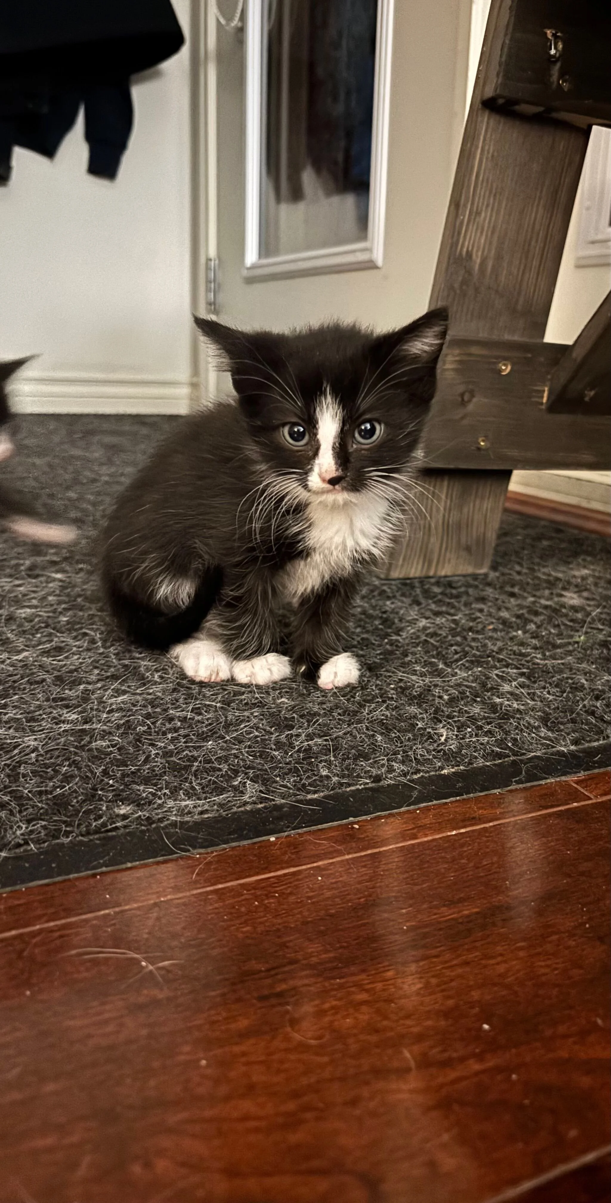 Vatican is a sweet girl kitten who’s still staying with her mama for a little while longer, but she’s already working hard on growing her confidence. She can be a bit shy and loves to hide around corners, but every day she peeks out a little more and learns that people are safe and wonderful.